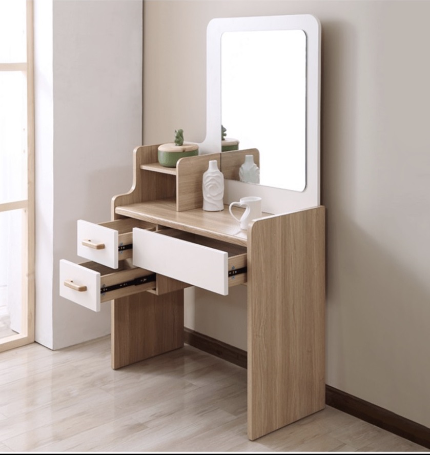 - Bàn trang được làm từ gỗ MDF phủ melamine chống mối mọt, cong vênh.