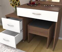 - Bàn trang được làm từ gỗ MDF phủ melamine chống mối mọt, cong vênh.